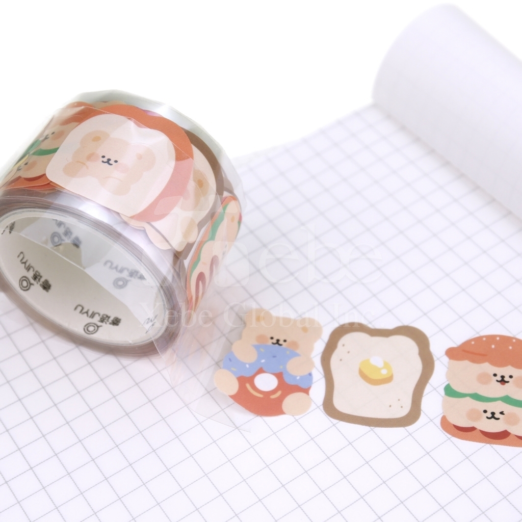 小熊早餐和纸胶带, 设计以可爱小熊搭配吐司、汉堡、煎蛋与甜甜圈为主题, 色彩温暖疗愈,每一格都像一份迷你早餐故事, 无论是装饰手帐、拼贴日记,或是点缀礼物包装, 都能轻松增添童趣与生活感,让小熊陪你开启美好的一天!